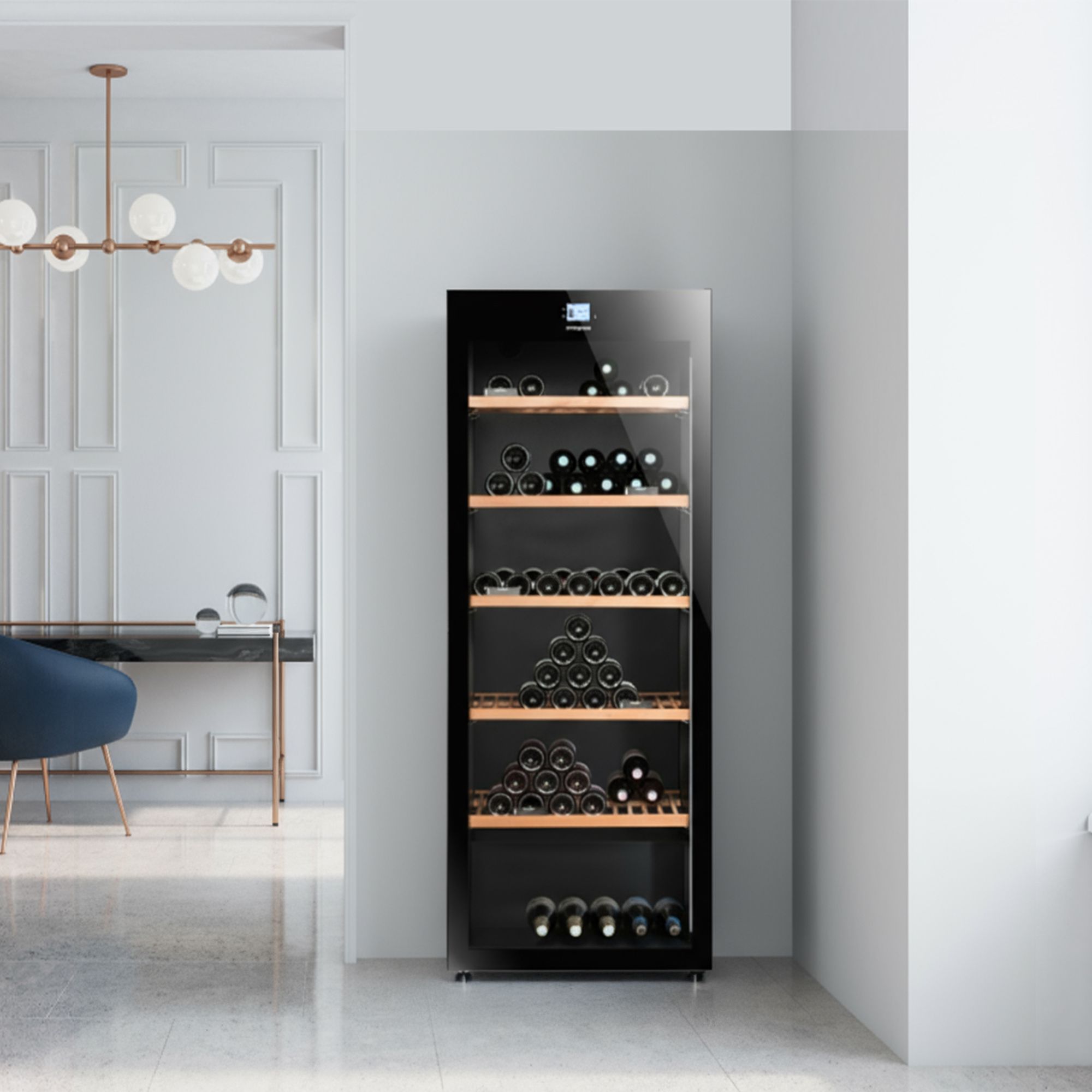 Avintage DIVA305 är ett fristående vinförvaringsskåp som återskapar perfekta förhållanden för lagring av vin: stabil temperatur, rätt luftfuktighet, minimala vibrationer, UV-skydd och kontinuerlig luftcirkulation. Med en temperaturzon (8–18 °C) och plats för upp till 294 flaskor är detta ett skåp för dig som vill mogna och bevara vin på högsta nivå. Tillverkad i Europa (Portugal) och kompatibel med Vinotag-appen för smart överblick över samlingen.