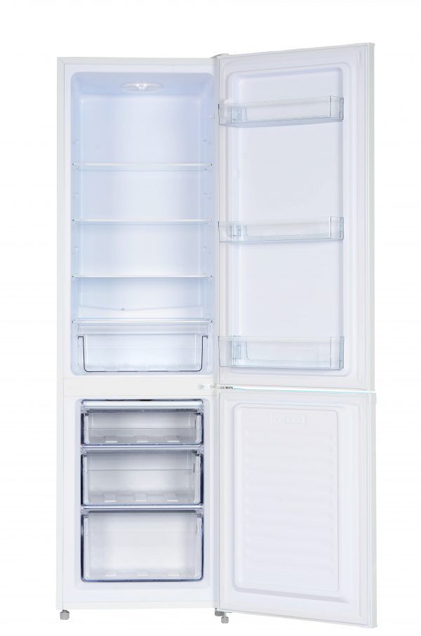 Kylskåpet är utrustat med tre hyllor, en praktisk grönsakslåda och flera dörrhyllor för flaskor och småvaror.