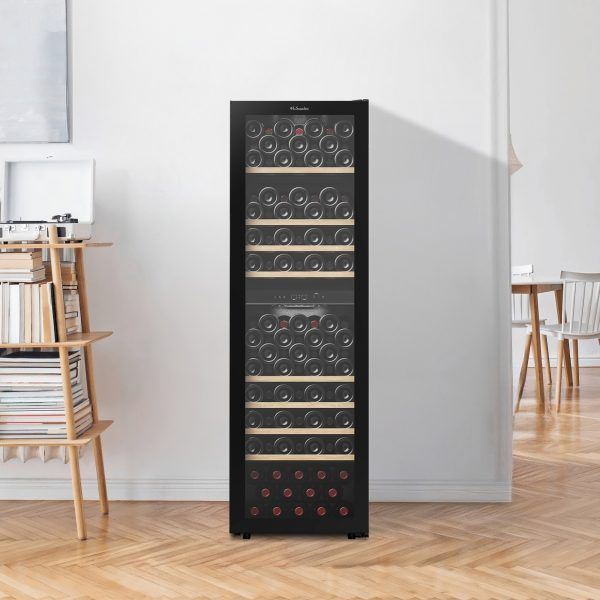 Vinkyl med två temperaturzoner och kapacitet för upp till 112 standard bordeauxflaskor.